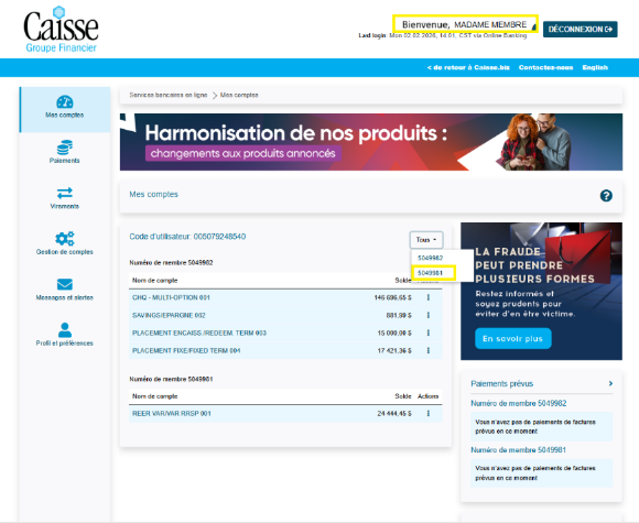 Trouver votre numéro de membre dans les services bancaires en ligne